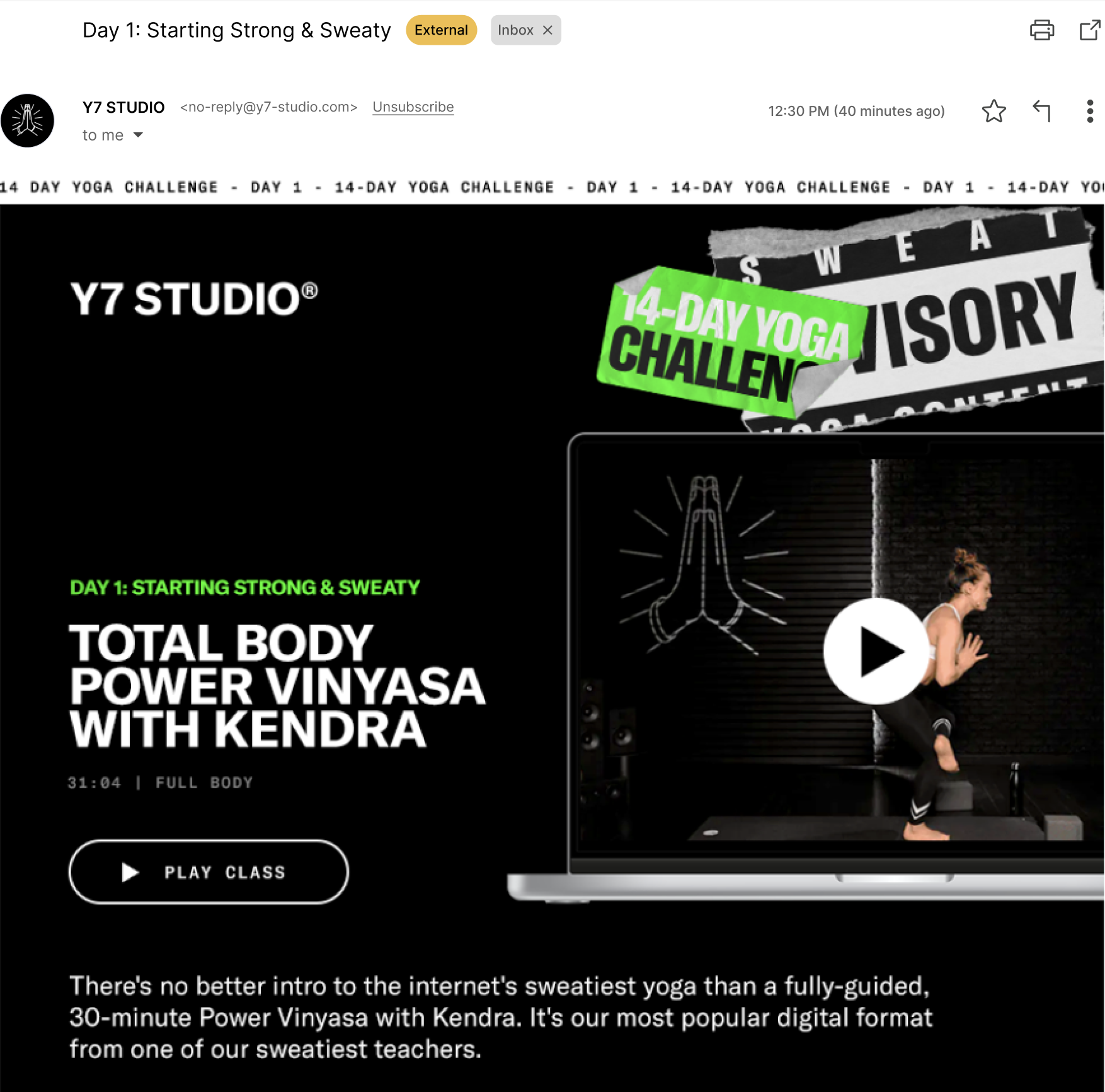 A key differentiator to Y7's SVOD offering versus native digital platforms was offering not just yoga, but the experience of a cult brick-and-mortar brand.   I emphasized this social proof heavily in product marketing materials, which analytics showed carried more weight than our new music integration (which was viewed as table stakes by users, rather than a point of differentiation).